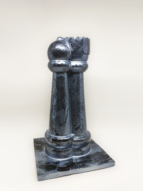 Base 15x15 cm, 25 cm de haut, poids environ 2 kg, à partir de 80€ (pièce monochrome satinée).