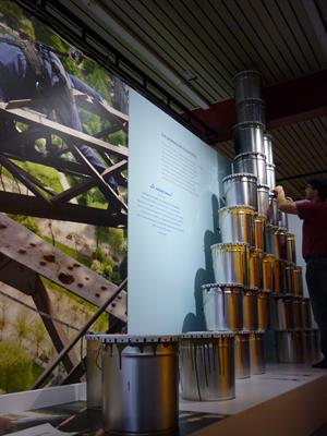 Création d'une tour Effeil en pots de peintures, représentants les couleurs au cours des compagnes de rénovation.