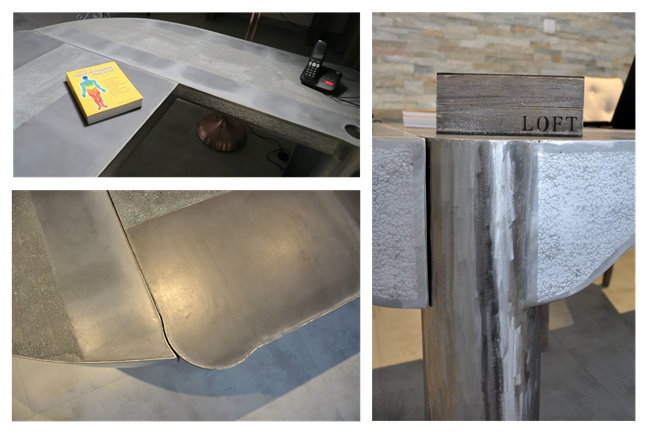 Les plateaux sont en acier, brut, verni, laqué, inox, corten ou en béton très hautes performances fibré, nombreux coloris possibles même blanc !